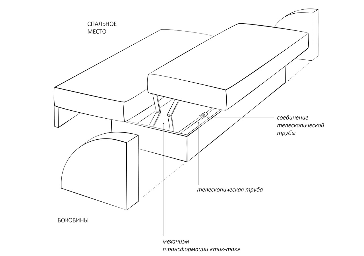 - «тик-так», известен также как «пантограф» - его принцип действия напоминает часовой маятник, который формирует особая система взаимодействующих между собой пружин и штанг. Он очень прост в эксплуатации, позволяет разложить и сложить диван на «тик-так», то есть в два счета.
