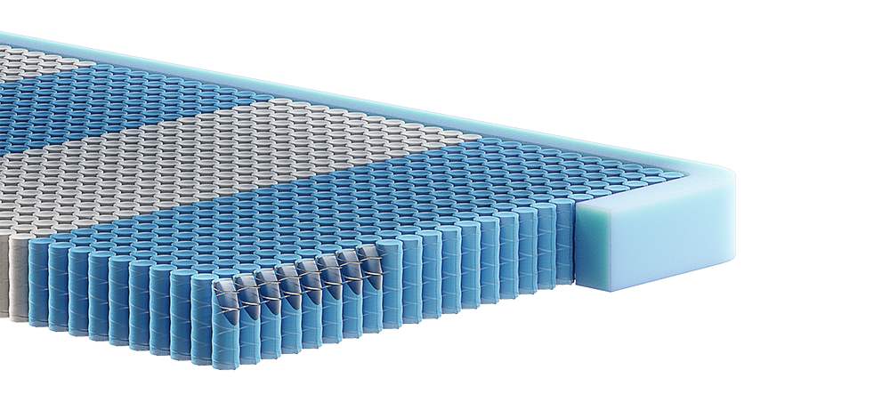 Отличительной особенностью данной модели является использование 7-ми зонального пружинного блока. В нем содержится 1000 пружин на спальное место. Представляет собой систему классических независимых пружин с усиленными поперечными и продольными зонами, расположенными в местах наибольшей нагрузки. Конструкция матраса включает в себя 7-зон жесткости. Каждая зона различается размером пружины, чем "тяжелее" зона, тем больше диаметр пружин.