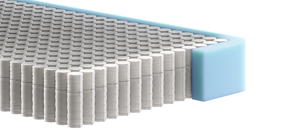 В матрасе используется блок независимых пружин в кармашках, 2 ряда, расположенных друг над другом - особенность конструкции матраса, направленная на создание дополнительной поддержки тела во время сна, особенно при повышенных нагрузках, сохраняя при этом ортопедические свойства матраса. Пружины при такой конструкции располагаются в 2 ряда друг над другом. При этом количество пружин в одном ряду на спальное место может быть представлено независимым пружинным блоком (ТФК) 256 пружин либо иметь 1000 пружин на одно спальное место. Чем больше пружин в каждом ряду, тем более выраженным ортопедическим эффектом будет обладать матрас, и тем большую нагрузку он может выдерживать. Между пружинными блоками, как правило размещают специальный прокладочный материал, чтобы изолировать пружинные блоки друг от друга.